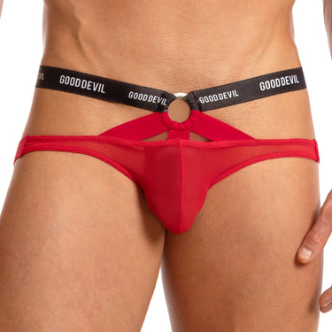 Good Devil has this mens jockstrap for the fashionista in you if you're looking to update your underwear collection. Polyamide and spandex are used in the creation of this jockstrap for men. It is used to provide you with the support and comfort you need while also keeping your package protected. The front of this male jockstrap has a sheer pouch that can retain your jewels. Moreover, it will make you seem sexier and more manly. A translucent mesh-like material on the front side of this mens jockstrap underwear prevents excessive sweating down below. Apart from that, it allows the wearer to stay cool and dry. The thin elastic waistband keeps everything in place. Three bands attached to the sheer fabric enhance the overall appearance of this underwear. The round holder connects the band and the waistband to make you look sexier.
